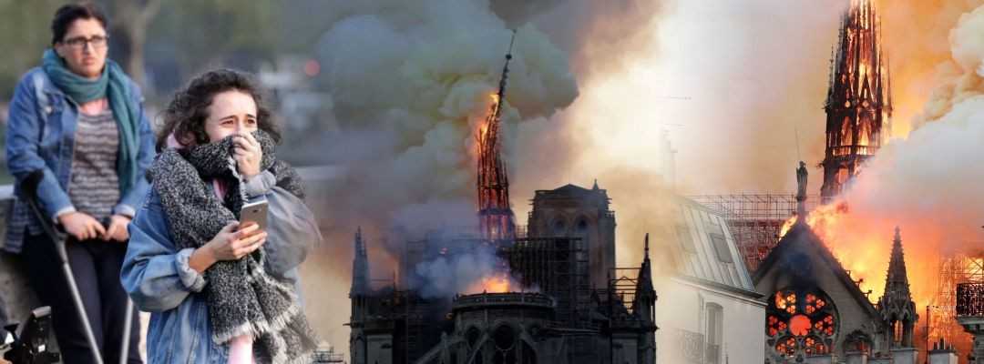 Η μεγάλη πυρκαγιά που κατακαίει την εκκλησία έχει προκαλέσει παγκόσμιο σοκ και θλίψη. Χιλιάδες Παριζιάνοι παρακολουθούν με απόγνωση την πύρινη λαίλαπα να καταστρέφει το ιστορικό οικοδόμημα. Εξαιτίας της πυρκαγιάς το εντυπωσιακό βέλος, η κορυφή του κωδωνοστασίου της Παναγίας των Παρισίων, κατέρρευσε.