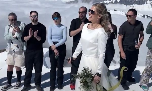 Φόρεσε νυφικό και έκανε σκι σε υψόμετρο 2.400 μ. για να παντρευτεί τον εκλεκτό της καρδιάς της
