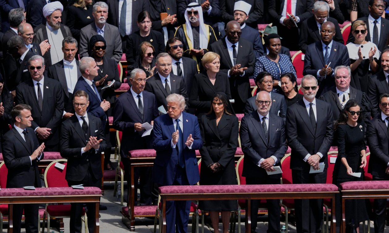 Ο πρώην πρόεδρος Τζο Μπάιντεν, στο κέντρο, και ο πρόεδρος Ντόναλντ Τραμπ, κάτω δεξιά, και άλλοι αξιωματούχοι, παρευρίσκονται στην κηδεία του Πάπα Φραγκίσκου στην πλατεία του Αγίου Πέτρου στο Βατικανό, Σάββατο 26 Απριλίου 2025