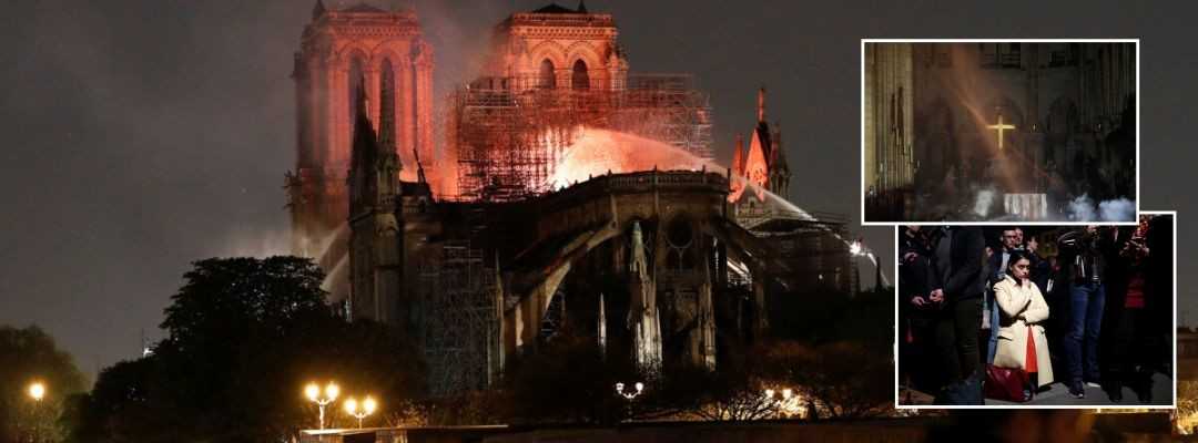 Αποσβολωμένοι, Παριζιάνοι, τουρίστες (καθολικοί, άθεοι, μουσουλμάνοι) αδυνατούσαν να πάρουν τα μάτια τους από το θέαμα της πύρινης κόλασης στην Παναγία των Παρισίων, στο Ιλ ντε λα Σιτέ, στο κέντρο της γαλλικής πρωτεύουσας. Κάποιοι έψαλλαν το Χαίρε Μαρία, άλλοι προσεύχονταν γονατιστοί. Έβρεχε στάχτη.