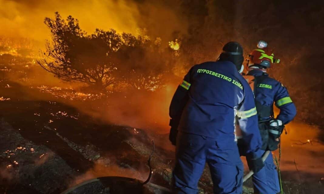 Κατά τη διάρκεια της νύχτας, ενισχύθηκαν και οι πυροσβεστικές δυνάμεις.
