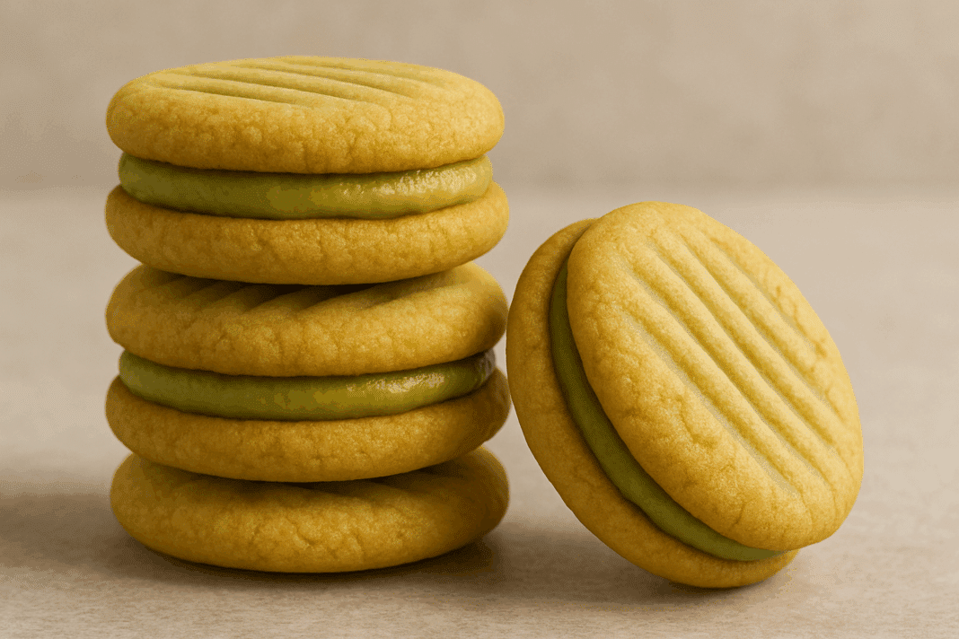 Αυτά τα μπισκότα είναι η απόλυτη απόλαυση για τους λάτρεις του φυστικιού! Τραγανά απ’ έξω και γεμάτα βελούδινη, αρωματική κρέμα φυστίκι Αιγίνης στο εσωτερικό τους, αποτελούν ένα εκλεπτυσμένο γλύκισμα που ξεχωρίζει από τα συνηθισμένα.