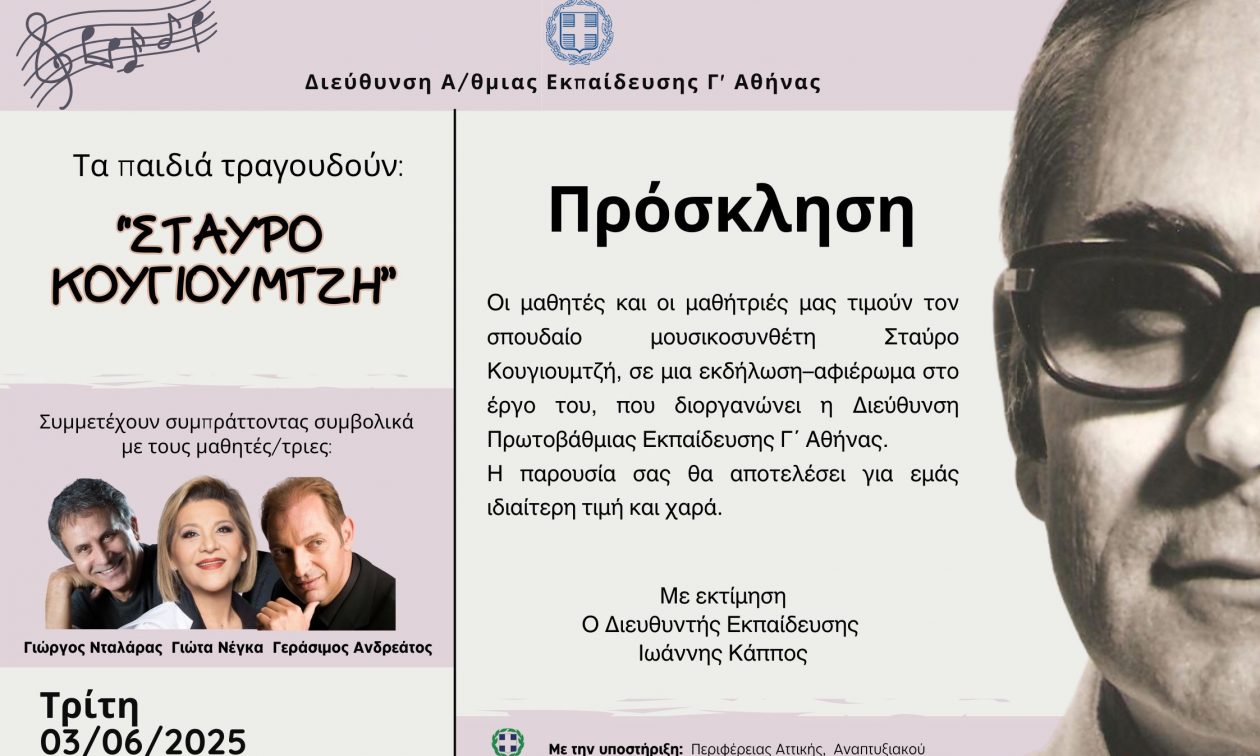 Μαθητές της Διεύθυνσης Π.Ε. Γ΄ Αθήνας τραγουδούν Σταύρο Κουγιουμτζή – «Όταν ανθίζουν οι πασχαλιές…»