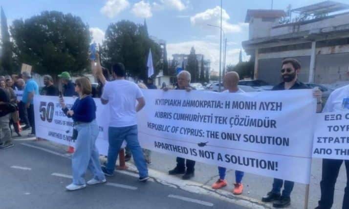 Την ίδια ώρα, στο οδόφραγμα Αγίου Δομετίου, πραγματοποιήθηκε εκδήλωση διαμαρτυρίας, με την Ένωση Κοινοτήτων κι άλλα οργανωμένα σύνολα της επαρχίας Κερύνειας, να υποβάλλουν σχετικό ψήφισμα διαμαρτυρίας σε εκπρόσωπο της ΟΥΝΦΙΚΥΠ.