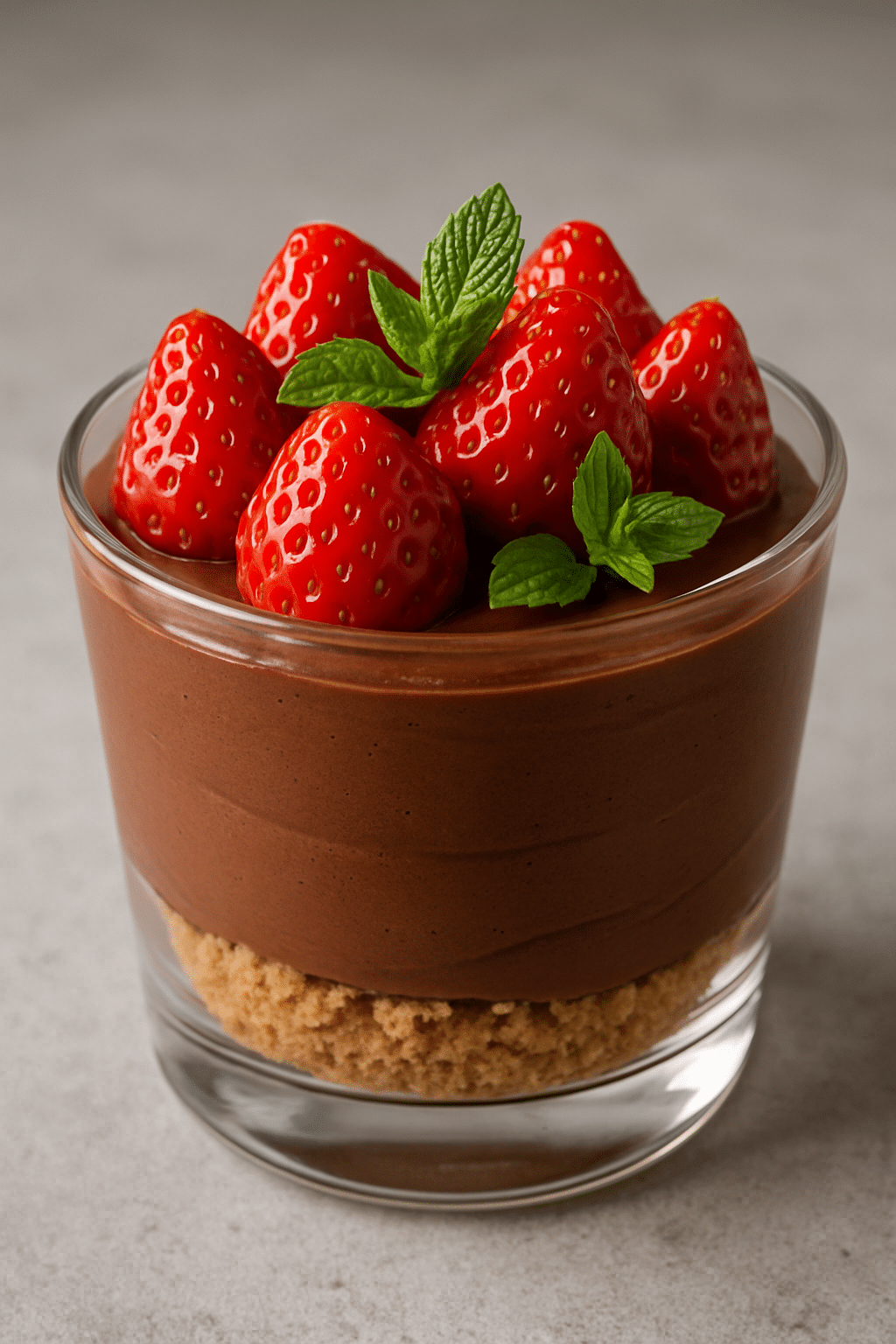 Μους σοκολάτας με φράουλες και τραγανή βάση μπισκότου