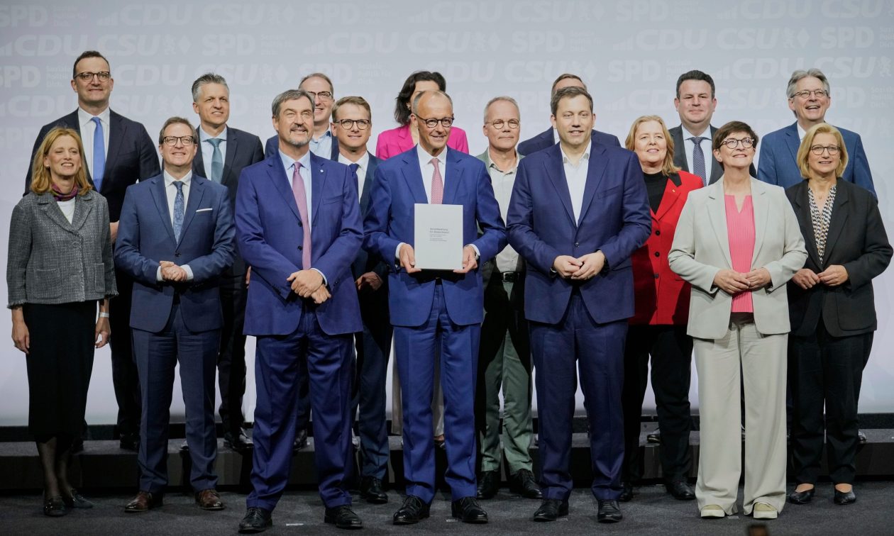Η Χριστιανική Ένωση (CDU/CSU) και το Σοσιαλδημοκρατικό Κόμμα (SPD) υπέγραψαν νωρίτερα σήμερα την προγραμματική συμφωνία τους, ανοίγοντας και τυπικά τον δρόμο για τον σχηματισμό του νέου ομοσπονδιακού κυβερνητικού συνασπισμού υπό τον αρχηγό του Χριστιανοδημοκρατικού Κόμματος (CDU) Φρίντριχ Μερτς, ο οποίος υποσχέθηκε «συστηματική και δυναμική εργασία από την πρώτη μέρα».
