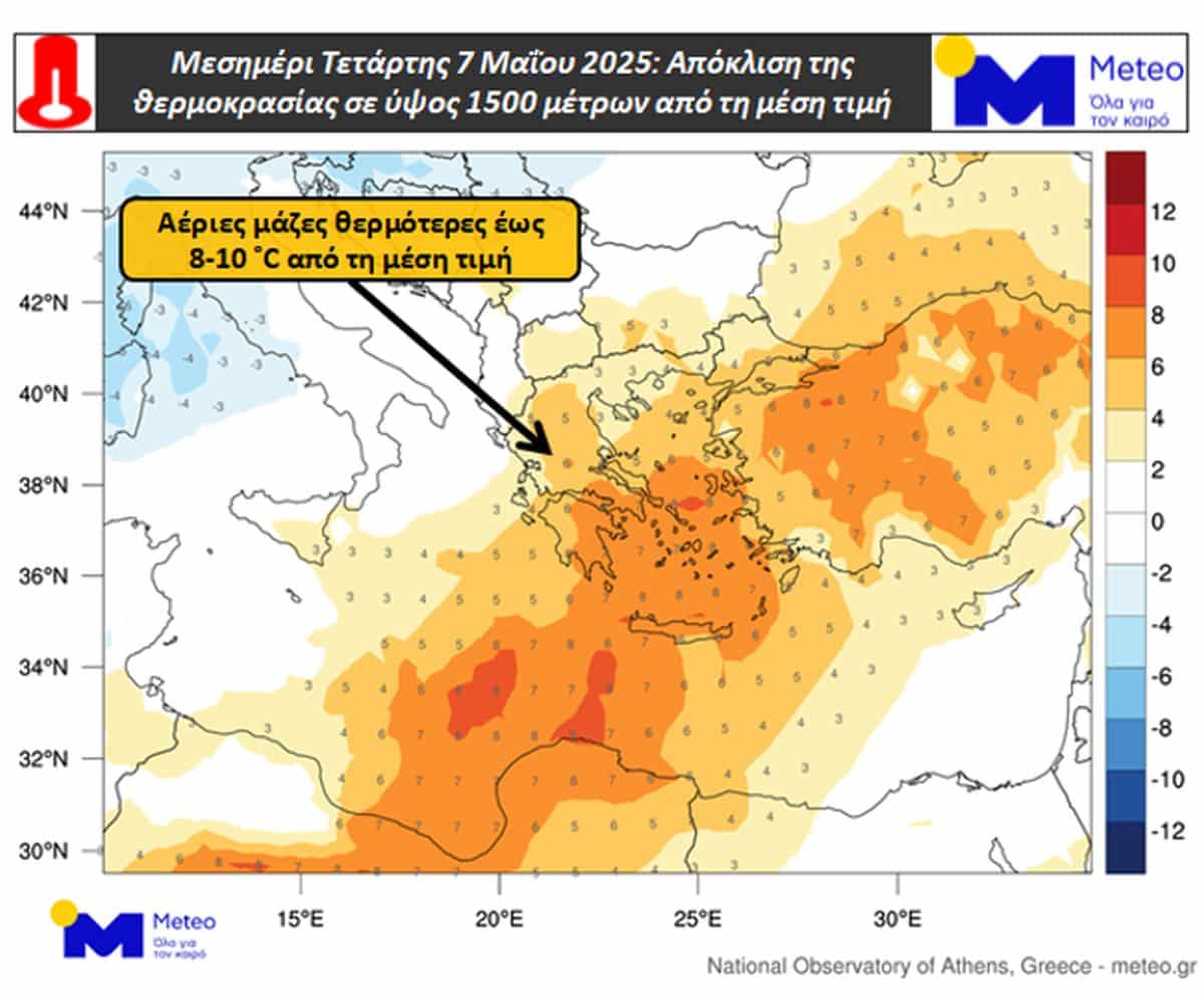 Θερμές αέριες μάζες, 8-10 βαθμούς θερμότερες από τις μέσες τιμές της εποχής, επηρεάζουν το κατώτερο στρώμα της ατμόσφαιρας, δημιουργώντας ασυνήθιστα ζεστό καιρό για την εποχή.