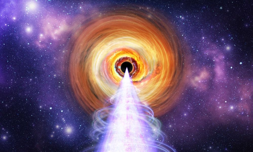 Οι μεγαλύτερες σε μάζα μαύρες τρύπες κατοικούν σε μακρινούς γαλαξίες, τροφοδοτώντας άφθονο αέριο στα γαλαξιακά κέντρα. Ένα μικρό ποσοστό από αυτές δημιουργεί σταθερά φωτεινά αντικείμενα στον ουρανό, που αποτελούνται από έναν δίσκο αερίων και δύο ευθυγραμμισμένους, ταχείς και εξαιρετικά ισχυρούς πίδακες πλάσματος που αναδύονται κάθετα απ’ αυτόν. Όταν οι πίδακες είναι προσανατολισμένοι προς τη Γη, ονομάζουμε αυτά τα συστήματα blazars.