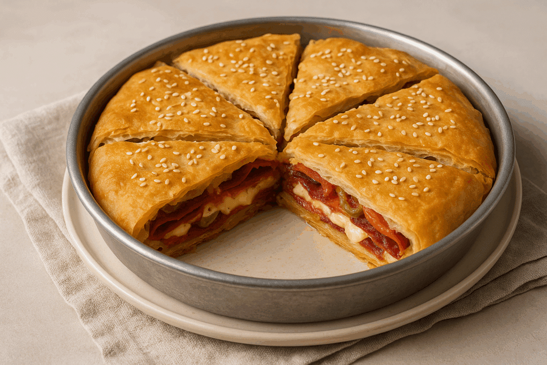 Η παστουρμαδόπιτα είναι μία από τις πιο χαρακτηριστικές πίτες της Μικράς Ασίας, με καταγωγή από τα βάθη της Ανατολής. Το κύριο συστατικό της, ο παστουρμάς, προσφέρει μια μοναδική, πικάντικη γεύση που ισορροπείται τέλεια από τo λιωμένη κασέρι και τη γλυκιά ντομάτα. Είναι ιδανική για ορεκτικό ή για κυρίως πιάτο σε τραπέζι με μεζέδες και κρασί.