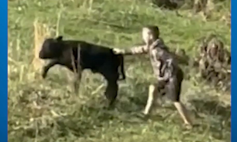 Ένα 9χρονο αγόρι έσωσε ένα μικρό μοσχάρι το οποίο είχε κολλήσει σε ένα ρυάκι, με μητέρα του μικρού ζώου να έδειχνε εμφανώς ταραγμένη.
