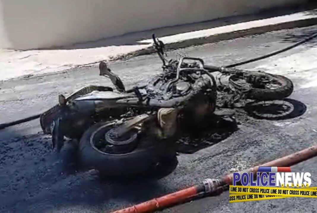 Οι αναβάτες κατάφεραν να απομακρυνθούν έγκαιρα, ενώ άλλοι αστυνομικοί έκλεισαν τη λεωφόρο Ηρακλείου -και στα δυο ρεύματα- μέχρι να γίνει η κατάσβεση από πυροσβέστες και να ολοκληρωθεί η έρευνα στη μηχανή.