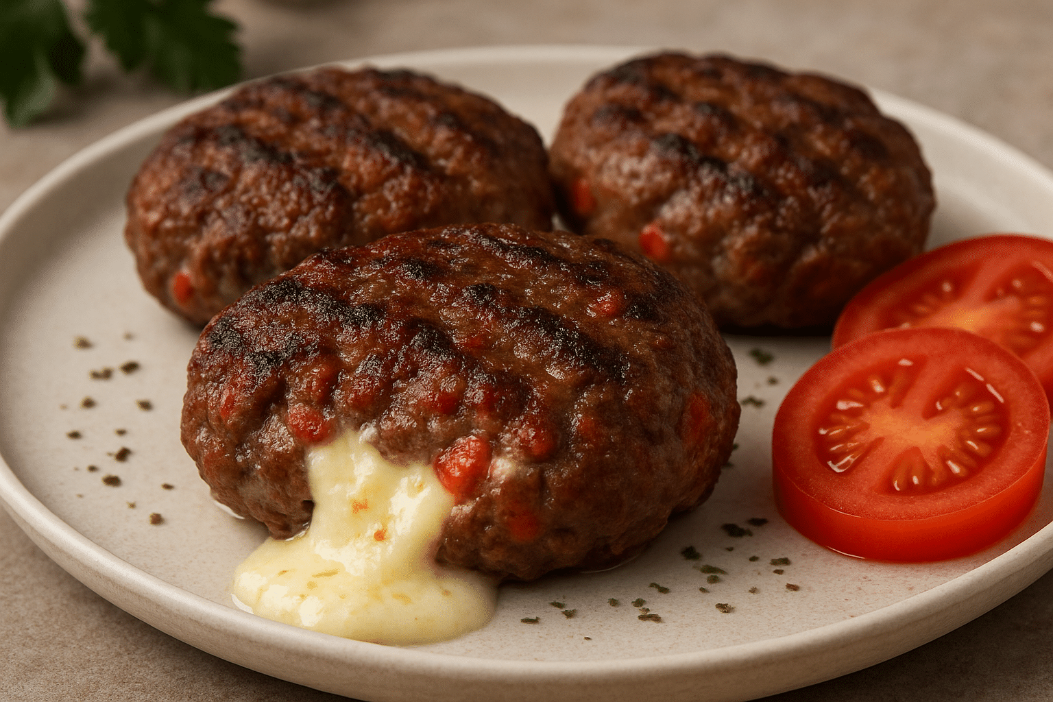 Αν θέλεις να απογειώσεις το κλασικό μπιφτέκι, αυτή η συνταγή είναι για εσένα. Ζουμερά μπιφτέκια με μοσχαρίσιο κιμά, γεμισμένα με φέτα και ψιλοκομμένη ντομάτα, προσφέρουν την τέλεια ισορροπία αλμυρής και δροσερής γεύσης. Ιδανικά για ψήσιμο στο φούρνο ή στη σχάρα.