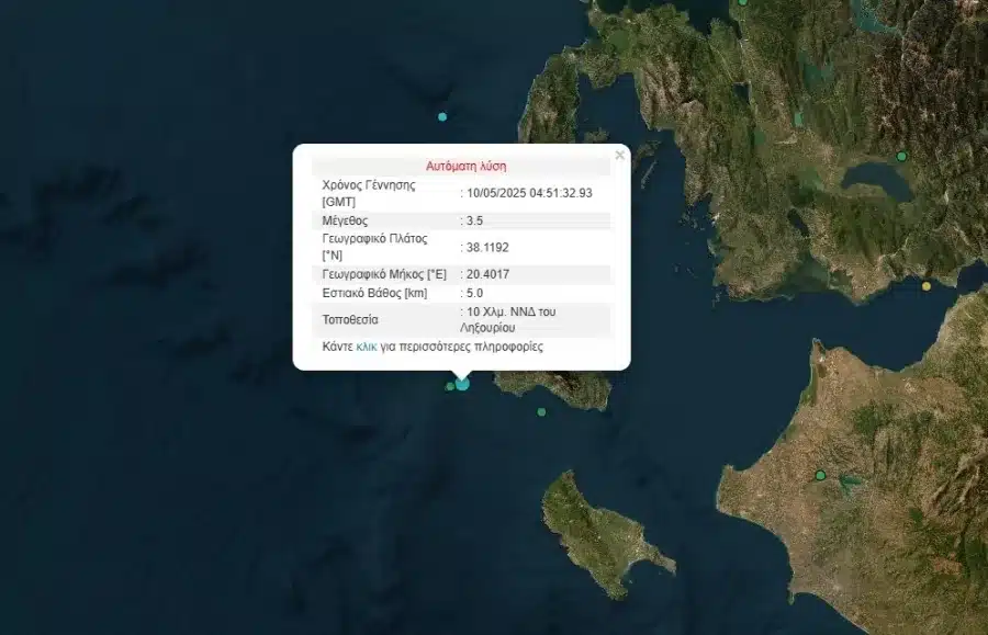 Σεισμός στην Κεφαλονιά 10 Μαΐου 2025 07:59 FacebookTwitterTelegramViberWhatsAppLinkedinEmail Σεισμική δόνηση σημειώθηκε το πρωί του Σαββάτου 10/5 στην Κεφαλονιά. Πρόκειται για σεισμό της τάξεως των 3,5 βαθμών της κλίμακας Ρίχτερ, με εστιακό βάθος 5χλμ. Όλα συνέβησαν στις 6:51 το πρωί 10 χλμ ΝΝΔ του Ληξουρίου στην Κεφαλονιά. FacebookTwitterTelegramViberWhatsAppLinkedinEmail Προηγούμενο άρθροΑλλάζουν όλα στους χώρους εργασίας: Αυξομειώσεις ωρών απασχόλησης από τους εργοδότες με ένα «κλικ»Επόμενο άρθροΜετρό Θεσσαλονίκης: Επιβάτες βρέθηκαν σε απόσταση «αναπνοής» από το μπροστινό βαγόνι Μπορεί να σας αρέσουν Ελλάδα Καλαμάτα: Κατέρρευσε τσιμεντένια μαρκίζα στο κέντρο της πόλης – Από θαύμα δεν υπήρξαν τραυματίες 5 Δεκεμβρίου 2025 22:11 Ελλάδα Εορτολόγιο 6 Δεκεμβρίου: Μεγάλη γιορτή για την Ορθοδοξία – Ποιοι γιορτάζουν αύριο 5 Δεκεμβρίου 2025 21:55 Ελλάδα Ένταση στο μπλόκο των αγροτών στην Κάτω Αχαΐα: Οδηγός ΙΧ συγκρούστηκε με οχήματα 5 Δεκεμβρίου 2025 21:47 Αφήστε ένα μήνυμα Σχόλιο: εισάγετε το σχόλιό σας! Όνομα: παρακαλώ εισάγετε το όνομά σας εδώ Email: έχετε εισάγει εσφαλμένη διεύθυνση ηλεκτρονικού ταχυδρομείου! παρακαλώ εισάγετε εδώ την ηλεκτρονική σας διεύθυνση Ιστοσελίδα: αποθηκεύστε το όνομα, το ηλεκτρονικό ταχυδρομείο και τον ιστότοπό μου σε αυτό το πρόγραμμα περιήγησης για την επόμενη φορά που θα σχολιάσω.
