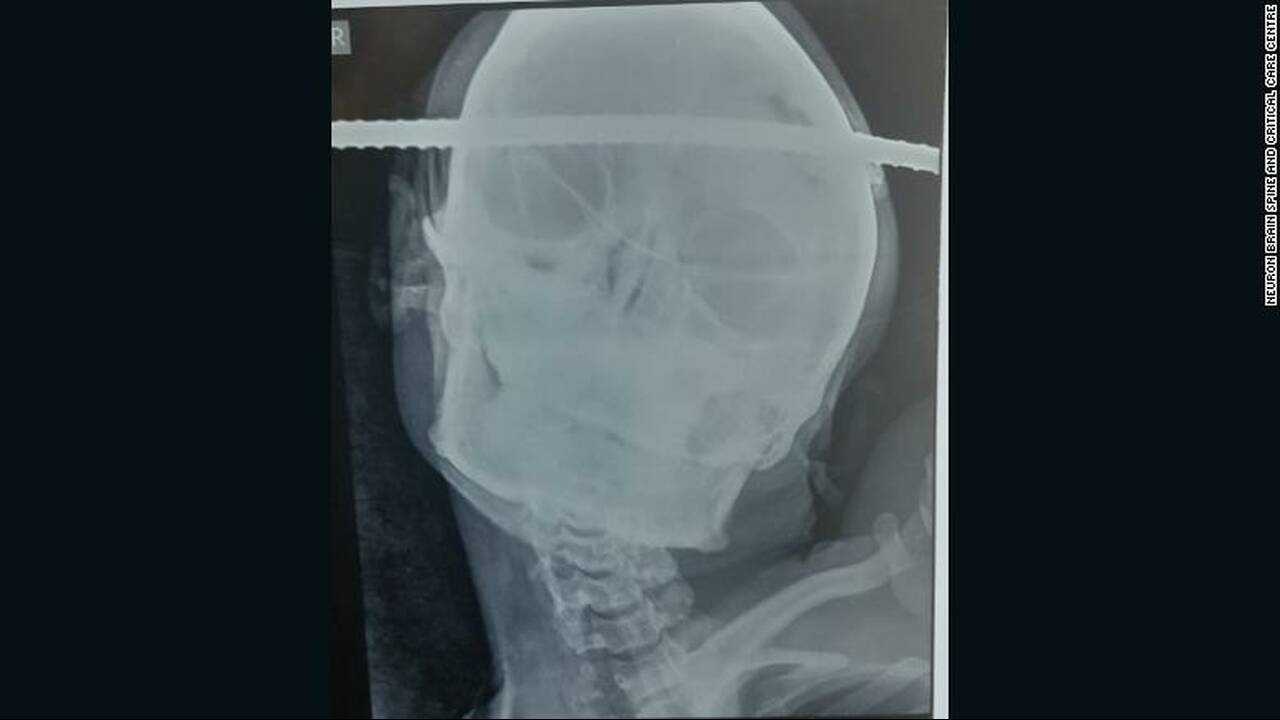 Ο τυχερός 21χρονος εργαζόταν σε εργοτάξιο αποκατάστασης πηγαδιού στην περιφέρεια Balaghat της επαρχίας Μαντνιά Πραντές όταν συνέβη το ατύχημα, κατά το οποίο ένας λοστός διαπέρασε το κρανίο και τον εγκέφαλό του.