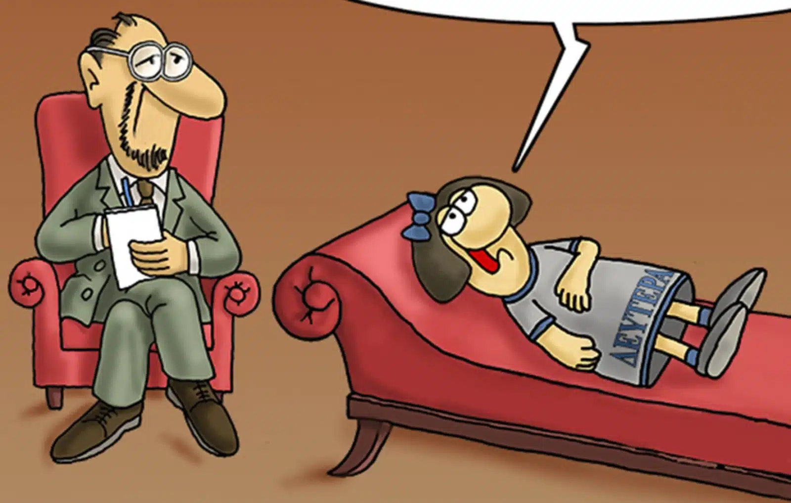 Στο σκίτσο της ημέρας, η Δευτέρα έχει πάρει θέση στο ντιβάνι του ψυχολόγου, με βλέμμα απογοητευμένο και ψυχή γεμάτη παράπονα. «Έχω την αίσθηση ότι όλος ο κόσμος με μισεί!» δηλώνει με αγωνία στον ειδικό, και ποιος μπορεί να την κατηγορήσει;
