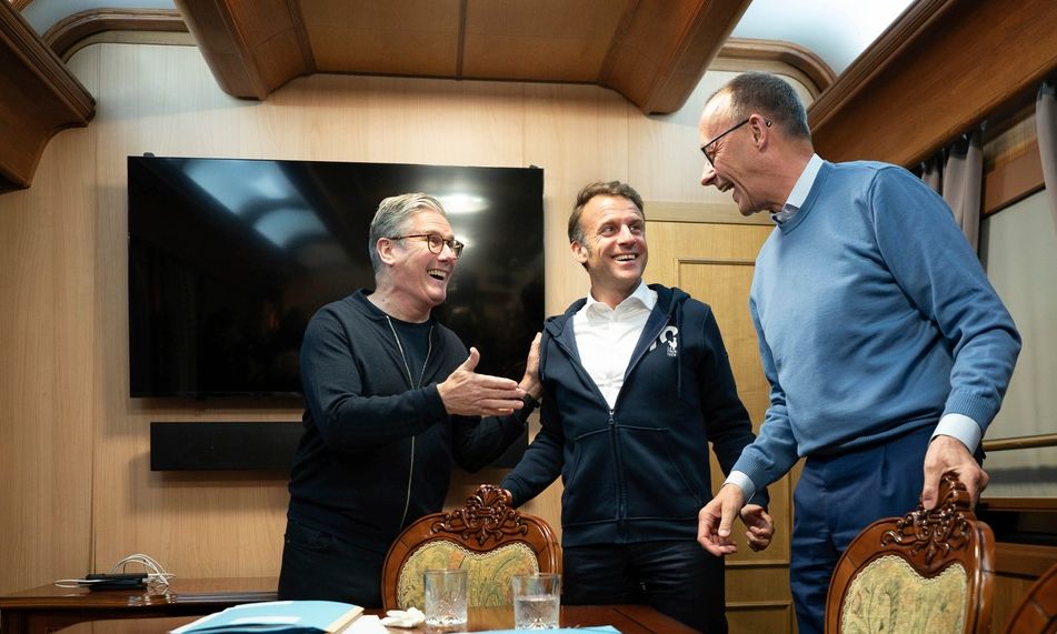 Οι Μακρόν, Μερτς και Στάρμερ ταξίδεψαν στην Ουκρανία για συνομιλίες με τον πρόεδρο Βολοντίμιρ Ζελένσκι μαζί με τον Πολωνό πρωθυπουργό Ντόναλντ Τουσκ. Τα τέσσερα έθνη, τα οποία αποτελούν μέρος μιας συμμαχίας που η Βρετανία και η Γαλλία έχουν ονομάσει «συνασπισμό των προθύμων», ορκίστηκαν να αυξήσουν την πίεση στη Ρωσία μέχρι να συμφωνήσει σε εκεχειρία στον τριετή πόλεμο. Ήταν η πρώτη φορά που οι ηγέτες των τεσσάρων ευρωπαϊκών εθνών πραγματοποίησαν κοινή επίσκεψη στην Ουκρανία.