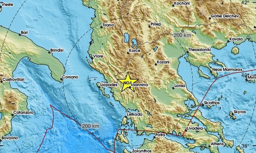 Το ακριβές επίκεντρο της δόνησης εντοπίζεται στα 14 χλμ. βορειοανατολίκά των Ιωαννίνων, σύμφωνα με το EMSC.