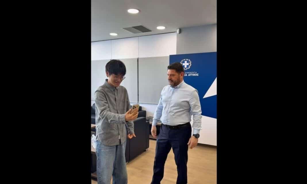Ο γνωστός TikToker, Οδυσσέας Σουν, είναι ένας από τους 13 φοιτητές του Τμήματος Ελληνικών Σπουδών του Πανεπιστημίου της Σαγκάης, με τους οποίους συναντήθηκε ο Περιφερειάρχης Αττικής, Νίκος Χαρδαλιάς, κατά την πρόσφατη επίσκεψή τους στην Αττική με πρωτοβουλία του Περιφερειάρχη.