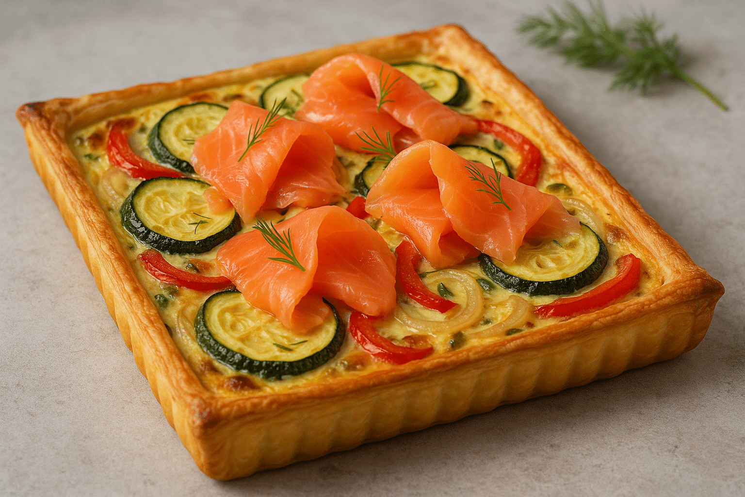 Αυτή η τάρτα είναι η ιδανική επιλογή για ένα ελαφρύ γεύμα ή ένα εντυπωσιακό ορεκτικό σε ένα τραπέζι με φίλους. Ο συνδυασμός της τραγανής βάσης, των φρέσκων λαχανικών και του καπνιστού σολομού προσφέρει ισορροπία γεύσεων και μια ξεχωριστή νοστιμιά που θα σας εντυπωσιάσει.
