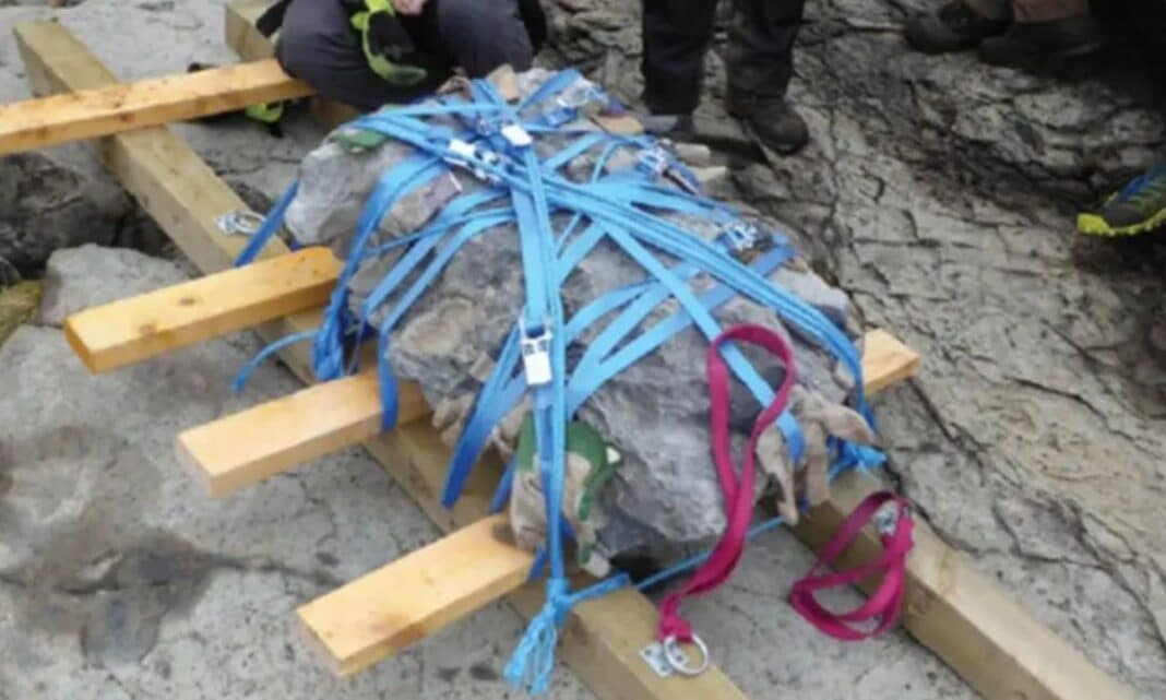 Χρειάστηκαν σχοινιά, σφήνες και ακόμη και ένα μηχανοκίνητο σκάφος για να μεταφερθεί το κομμάτι με ασφάλεια στο λιμάνι. Η ομάδα έπρεπε να εργαστεί με αυστηρές άδειες, καθώς η περιοχή αποτελεί μέρος προστατευόμενης περιοχής ειδικού επιστημονικού ενδιαφέροντος (SSSI).