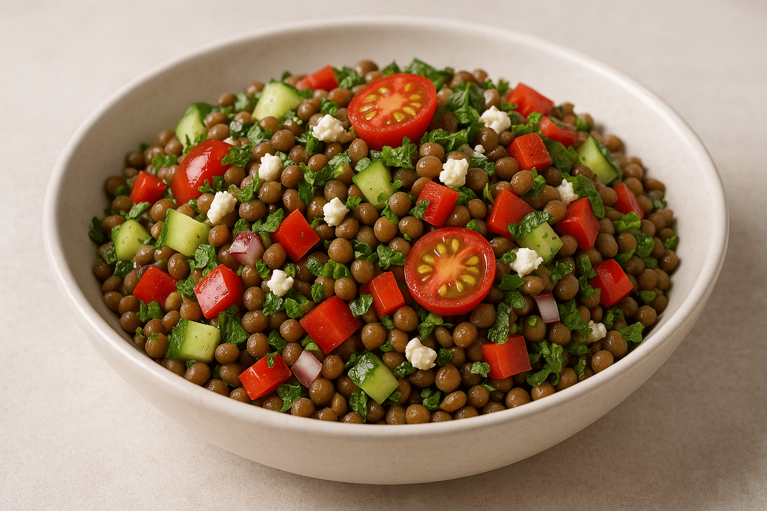 Αν ψάχνεις μια ελαφριά, υγιεινή και χορταστική σαλάτα, αυτή η συνταγή με φακές είναι ιδανική. Πλούσια σε φυτικές ίνες και πρωτεΐνη, συνδυάζει την απλότητα των φακών με πολύχρωμα λαχανικά, μυρωδικά και ένα δροσερό dressing με λεμόνι και ελαιόλαδο. Μπορεί να σερβιριστεί ως κυρίως γεύμα ή ως συνοδευτικό σε ψητά.
