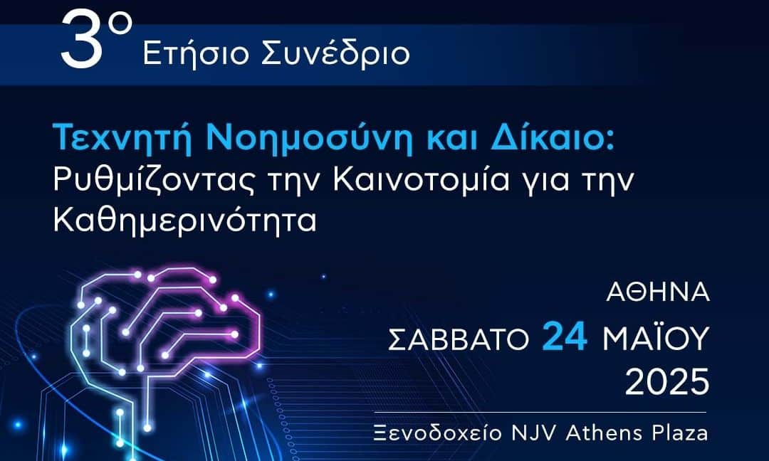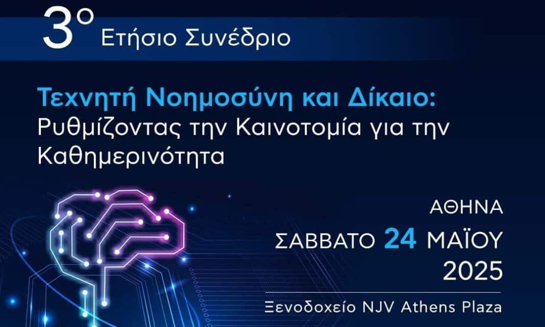Το Σάββατο 24 Μαΐου 2025 πραγματοποιείται στην Αθήνα το 3ο Ετήσιο Συνέδριο του Rythmisis – Εθνικού Ινστιτούτου Δικαίου Τεχνητής Νοημοσύνης, Προσωπικών Δεδομένων και Ψηφιακής Διακυβέρνησης, με επίκεντρο τις προκλήσεις της νομικής ρύθμισης σε κάθε τεχνολογική καινοτομία.