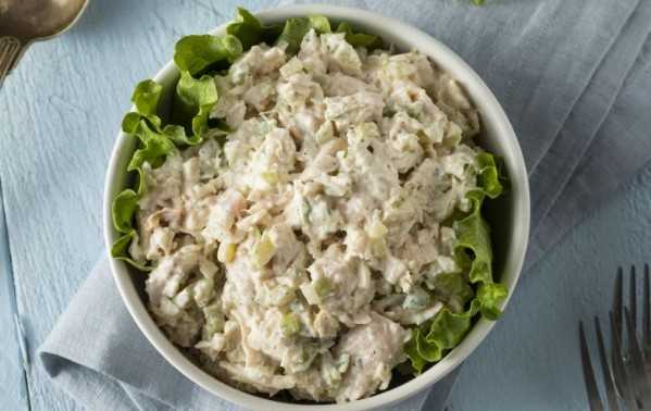 Σε ένα μεγάλο μπολ, ανακατέψτε τη μαγιονέζα, το γιαούρτι, τη μουστάρδα, τον χυμό λεμονιού, μισό κουταλάκι του γλυκού αλάτι και ¼ κουταλάκι του γλυκού πιπέρι. Προσθέστε το κοτόπουλο και ανακατέψτε το όλο μαζί.
