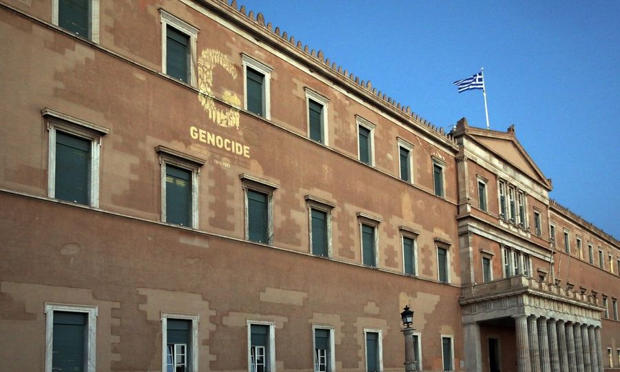 Η πρόσοψη του κτηρίου της Βουλής έφερε το αρχίγραμμα G από τη λέξη Genocide ως ένδειξη πένθους