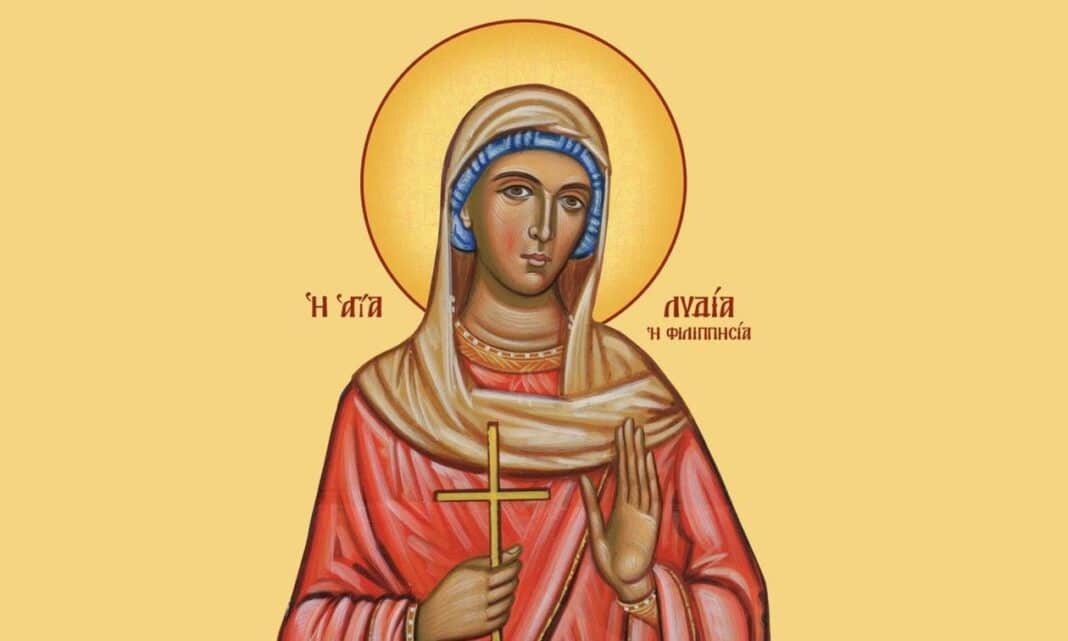 Η Αγία Λυδία ήταν έμπορος πορφύρας από τα Θυάτειρα της Μικράς Ασίας. Διέμενε στους Φιλίππους της Μακεδονίας, όπου κατηχήθηκε και βαπτίστηκε στις όχθες του ποταμού Ζυγάκτη μαζί με όλη την οικογένειά της από τον Απόστολο Παύλο (Πράξεις των Αποστόλων, κεφ. 16). Αποτέλεσε την πρώτη Ευρωπαία Χριστιανή, καθώς ήταν η πρώτη που βαπτίσθηκε επί ευρωπαϊκού εδάφους.