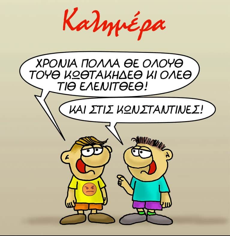 Και ο φίλος του, με απόλυτη σοβαρότητα, προσθέτει: «Και στις Κωνσταντίνες!»