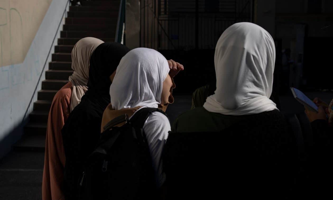 Γυναίκες περιμένουν στην ουρά πριν ψηφίσουν για τον πρώτο γύρο των προεδρικών εκλογών σε εκλογικό τμήμα την Κυριακή 10 Απριλίου 2022 στη βόρεια περιοχή Malpasse της Μασσαλίας, στη νότια Γαλλία. Ο υπουργός Παιδείας της Γαλλίας ανακοίνωσε τη Δευτέρα, 28 Αυγούστου 2023, ότι οι μακριές ρόμπες στις σχολικές αίθουσες θα απαγορευτούν, λέγοντας ότι η κοσμικότητα στα σχολεία της χώρας “δοκιμάζεται” μέσω των ενδυμάτων, που φορούνται κυρίως από μουσουλμάνους