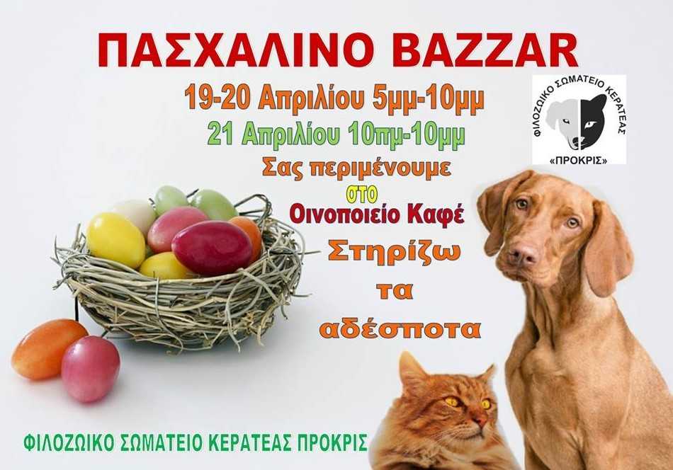 Το φιλοζωικό σωματείο Κερατέας “Προκρις” σας προσκαλεί στο Πασχαλινό του Bazzar Παρασκευή και Σάββατο στις 19 και 20 Απριλιου 5μμ-10μμ και Κυριακη 21 Απριλιου όλη μέρα από τις 10πμ -10μμ για να στηρίξουμε όλοι μαζί και να βοηθήσουμε τα αδεσποτακια μας