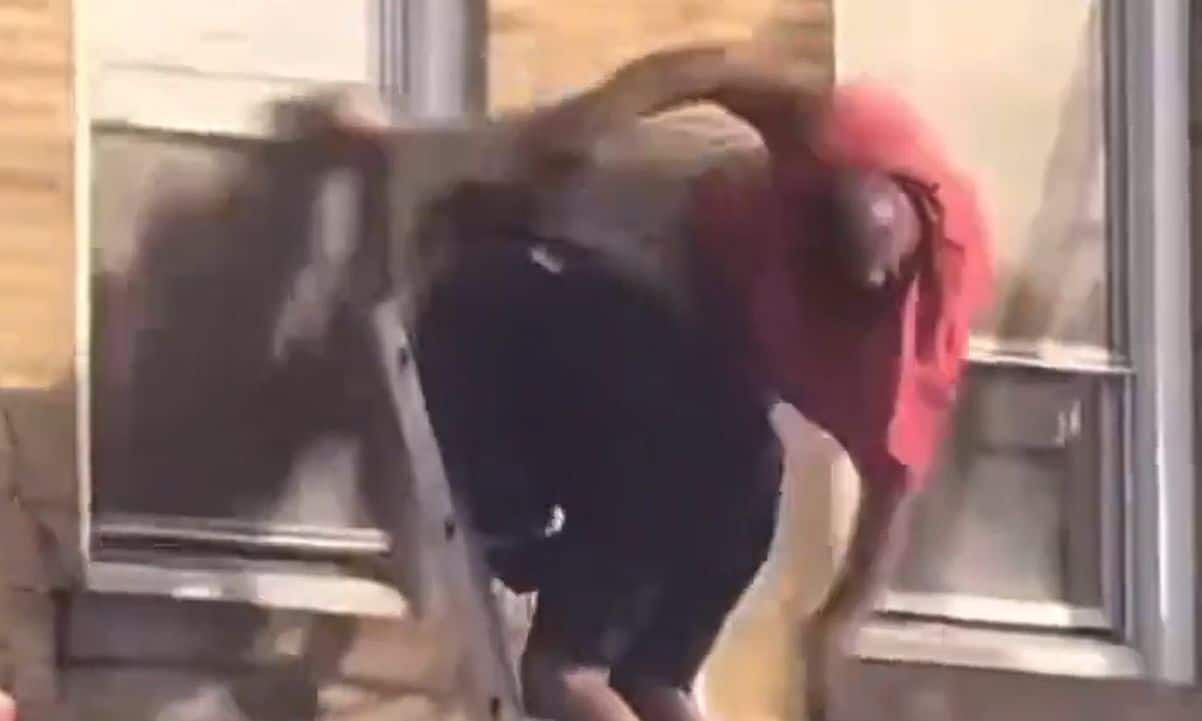 Πλάνα βίντεο που τραβήχτηκαν από έναν αυτόπτη μάρτυρα, δείχνουν τον άνδρα να βγαίνει από ένα παράθυρο του τρίτου ορόφου, ενώ καπνός ξεχύνεται πίσω του — και έναν πυροσβέστη να περιμένει στην κορυφή μιας αναδιπλούμενης σκάλας για να τον βοηθήσει να ξεφύγει από τις φλόγες.