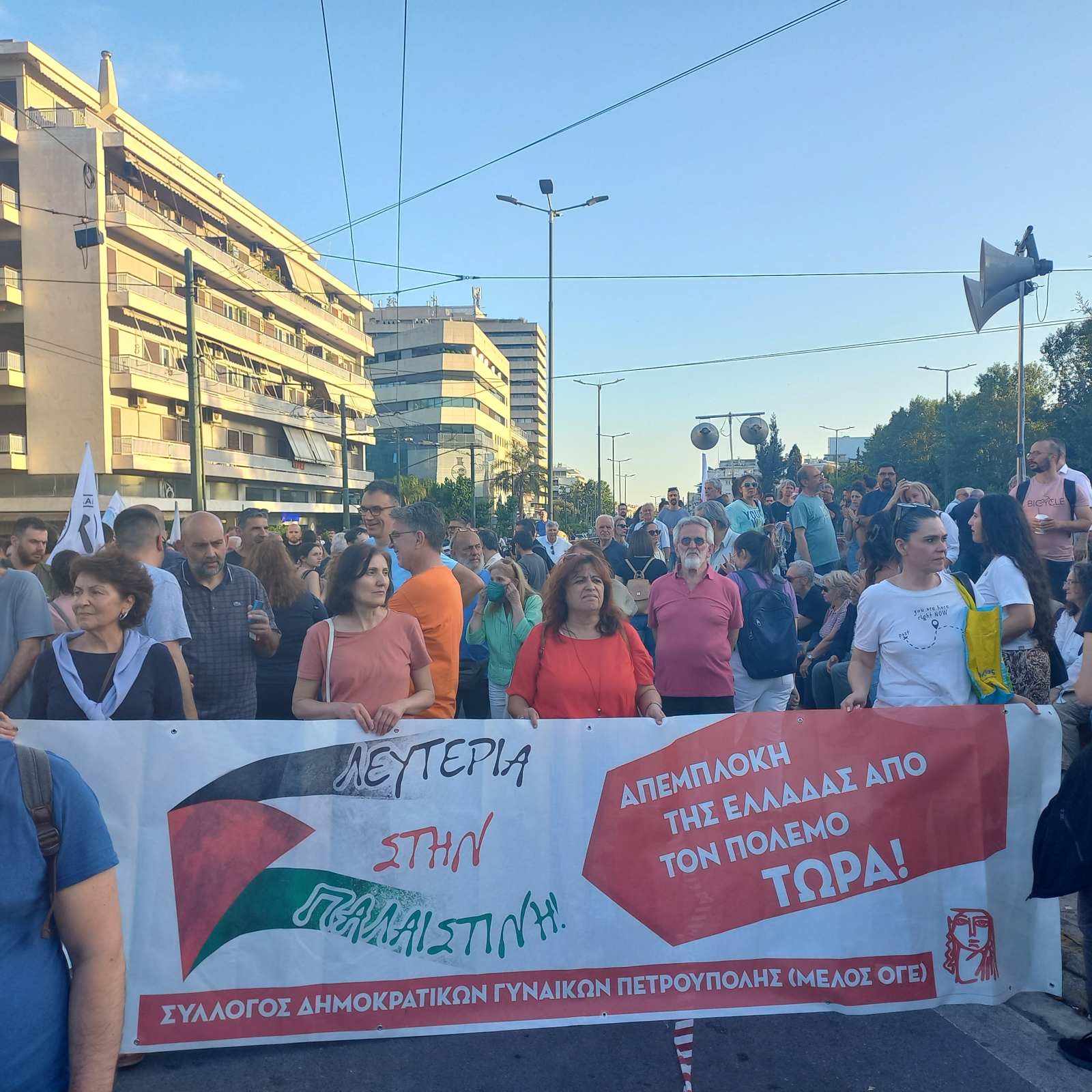 Με το σύνθημα «ενώνουμε τις φωνές μας κατά της σφαγής του Παλαιστινιακού λαού, όλοι μαζί για μια ελεύθερη Παλαιστίνη» συλλογικοί φορείς και συλλογικότητες ζητούν να σταματήσει ο πόλεμος, να πάρει σαφή θέση η Ελλάδα και να επιτραπεί η ανθρωπιστική βοήθεια στον πολιορκημένο θύλακα.