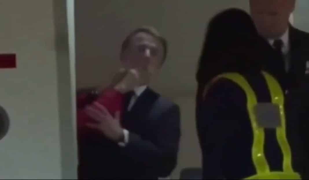 Στο εν λόγω βίντεο, που έχει γίνει viral, η Μπριζίτ φαίνεται να χτυπά τον σύζυγό της λίγο πριν εκείνος αποβιβαστεί από το προεδρικό αεροσκάφος το βράδυ της Κυριακής. Ο πρόεδρος κάνει ένα βήμα πίσω, εμφανώς αιφνιδιασμένος, προτού ανακτήσει την ψυχραιμία του και χαιρετήσει τις κάμερες που τον περίμεναν στον διάδρομο προσγείωσης. Η Μπριζίτ, εν τω μεταξύ, παραμένει για λίγο πίσω από την πόρτα του αεροσκάφους, αποφεύγοντας να εμφανιστεί μπροστά στις κάμερες αμέσως, πιθανότατα για να μην αποκαλύψει μέσω της γλώσσας του σώματος περισσότερα από όσα ήθελε. Το ζευγάρι, παντρεμένο από το 2007, κατέβηκε τελικά μαζί τα σκαλιά του αεροσκάφους, με τη Μπριζίτ να αποφεύγει να πιάσει το χέρι του Μακρόν.