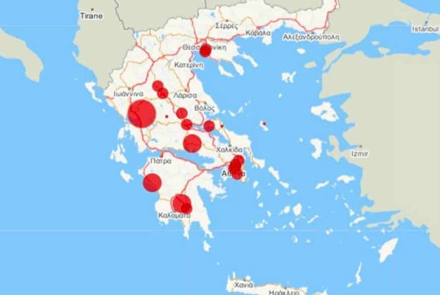 Μερικά από λίγα μόλις δευτερόλεπτα, ανοίγει ο χάρτης της Ελλάδας, και οι περιοχές όπου κατοικούν όσοι έχουν το ίδιο επώνυμο με αυτό που έχει αναγραφεί στο σχετικό πεδίο, είναι σημαδεμένες με κόκκινους κύκλους.