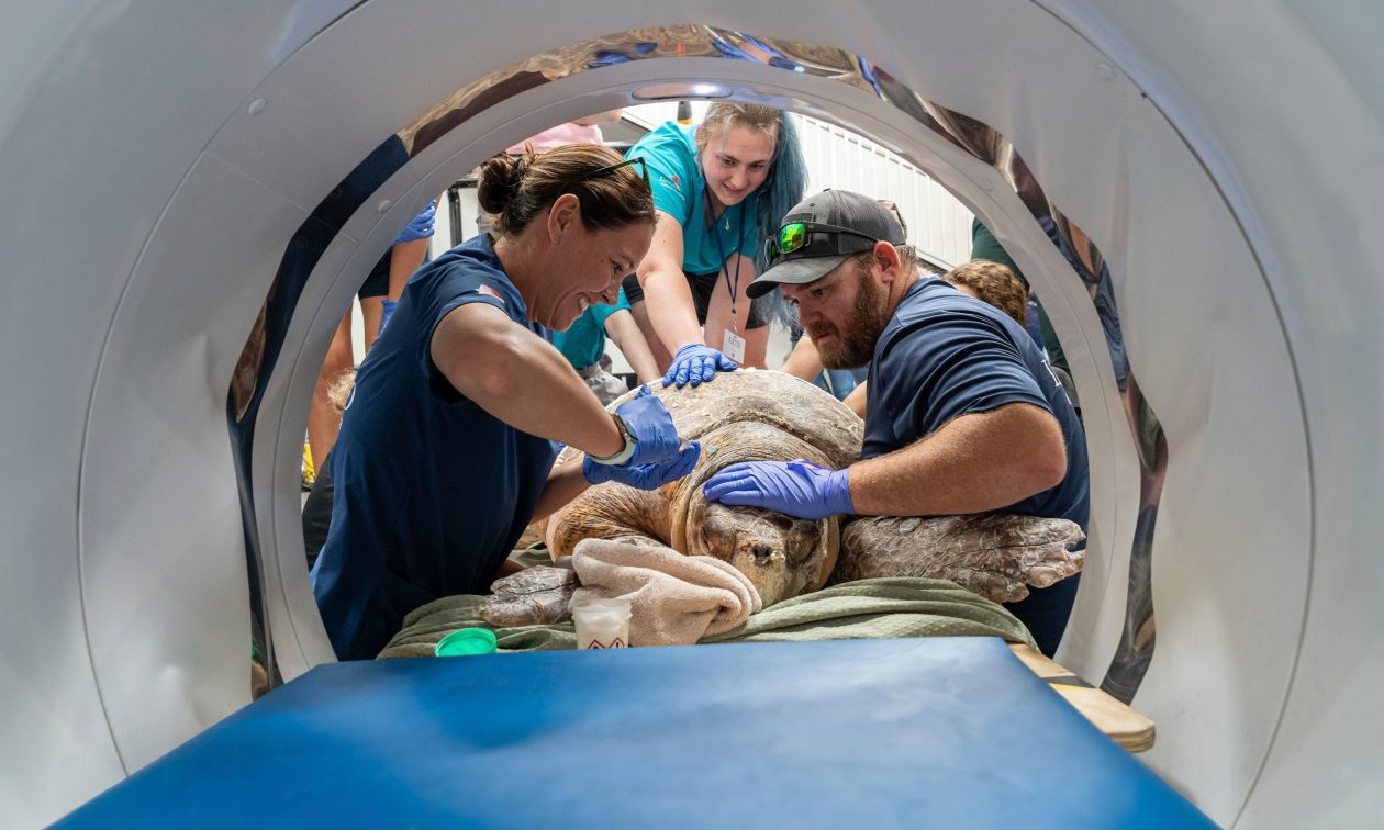 Όταν μια τεράστια θαλάσσια χελώνα καρέτα-καρέτα 136 κιλών χτυπήθηκε από ένα σκάφος και εισήχθη σε κτηνιατρείο της Φλόριντα των ΗΠΑ, οι γιατροί δεν ήξεραν τι να κάνουν, καθώς έπρεπε να εξακριβώσουν την έκταση των τραυμάτων της, αλλά ο αξονικός τομογράφος στο Loggerhead Marinelife Center στο Juno Beach ήταν πολύ μικρός.