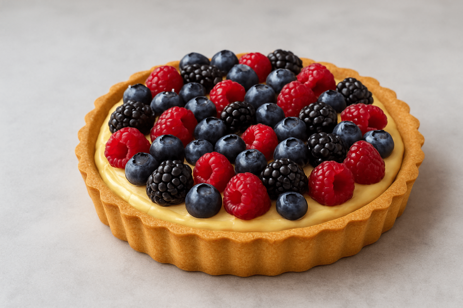 Η τάρτα με φρούτα του δάσους και κρέμα ζαχαροπλαστικής συνδυάζει τη βελούδινη υφή της κρέμας ζαχαροπλαστικής με την έντονη γεύση των φρούτων του δάσους. Ιδανική για κάθε εποχή, αυτή η τάρτα θα κλέψει τις εντυπώσεις σε κάθε τραπέζι, από ένα απλό οικογενειακό γλυκό μέχρι ένα επίσημο κάλεσμα.