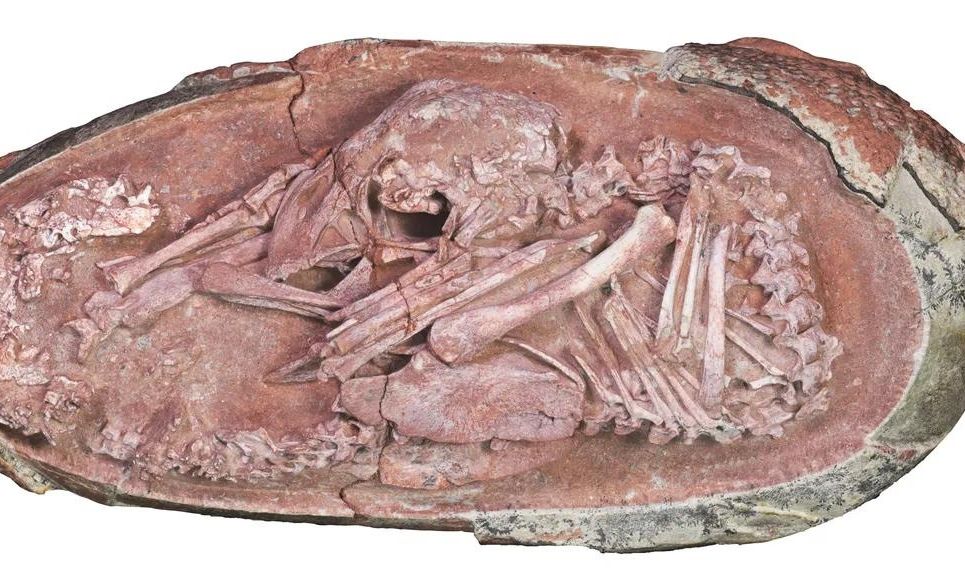 Το εντυπωσιακό δείγμα ανήκει σε Οβιραπτορόσαυρο – μια ομάδα φτερωτών, δίποδων θηρόποδων δεινοσαύρων, που συνδέονται στενά εξελικτικά με τα σύγχρονα πτηνά. Το έμβρυο βρέθηκε κουλουριασμένο μέσα στο αυγό, σε μια χαρακτηριστική στάση γνωστή ως «αναδίπλωση», η οποία παρατηρείται στα σημερινά έμβρυα πτηνών λίγο πριν την εκκόλαψη.