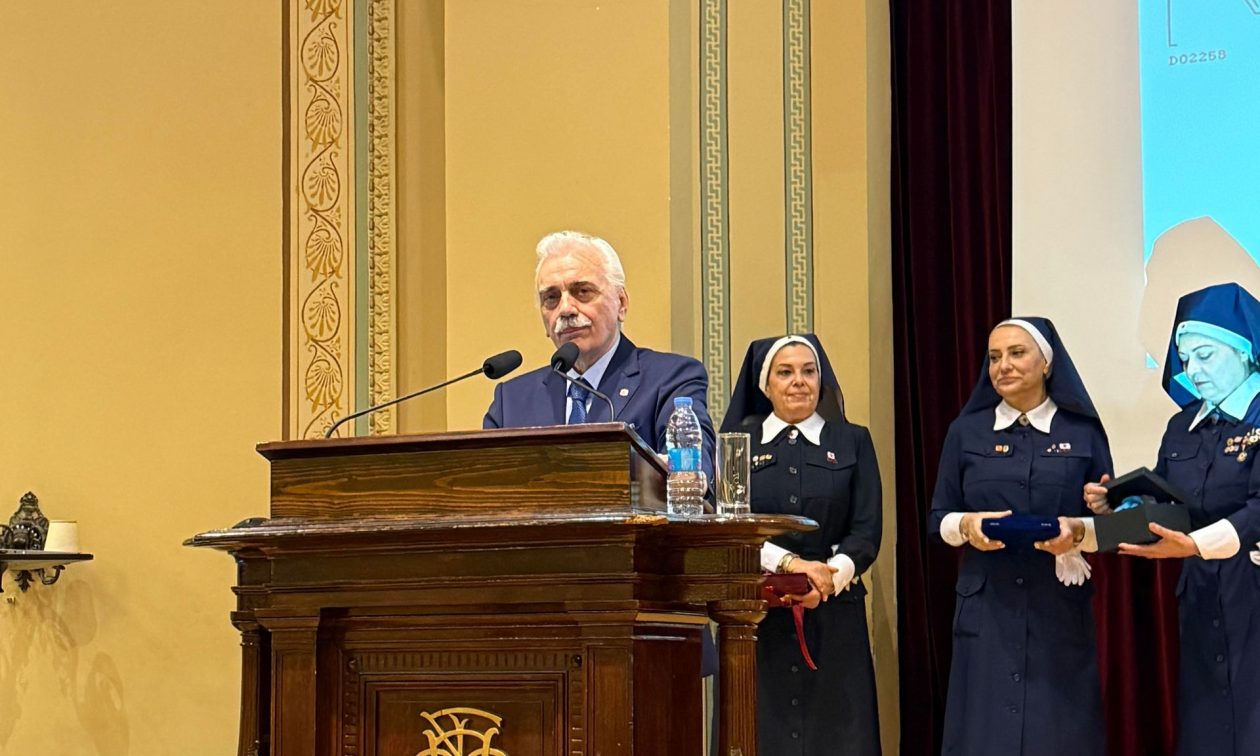 Ο Πρόεδρος του Ε.Ε.Σ., ιδιαίτερα συγκινημένος για την τιμητική αυτή βράβευση, κατά τη διάρκεια της ομιλίας του, μεταξύ άλλων, ανέφερε: «Η αναγνώριση αυτή ανήκει σε όλους τους εθελοντές και τα στελέχη του Ελληνικού Ερυθρού Σταυρού, που καθημερινά εργάζονται με αφοσίωση για την ανακούφιση του ανθρώπινου πόνου. Η φαρμακευτική επιστήμη και η ανθρωπιστική δράση είναι αλληλένδετες στην κοινή προσπάθεια για μια κοινωνία με υγεία, αλληλεγγύη και αξιοπρέπεια».