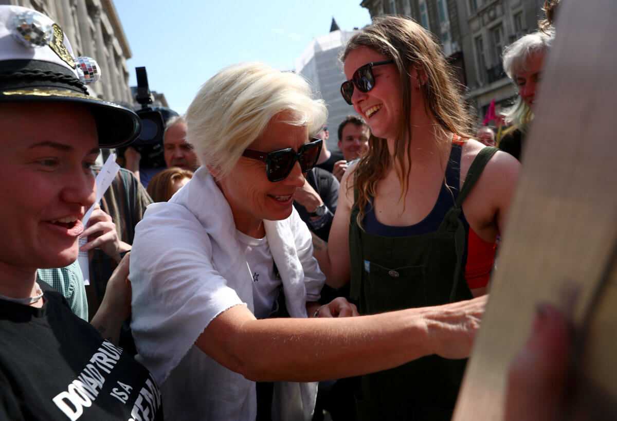 Η Έμμα Τόμσον, μαζί με άλλους ηθοποιούς, ανέγνωσαν ποιήματα, ύμνους στην ομορφιά της φύσης, από ένα ροζ σκάφος που έφεραν οι διαδηλωτές στο Όξφορντ Σέρκους, στην καρδιά του Λονδίνου.