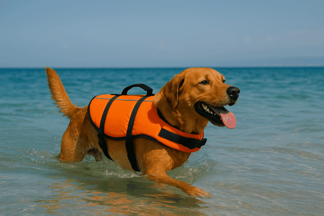 Χρησιμοποιήστε σωσίβιο για σκύλους: Ιδιαίτερα αν πηγαίνετε σε βαθιά νερά ή αν είναι μικρόσωμος.