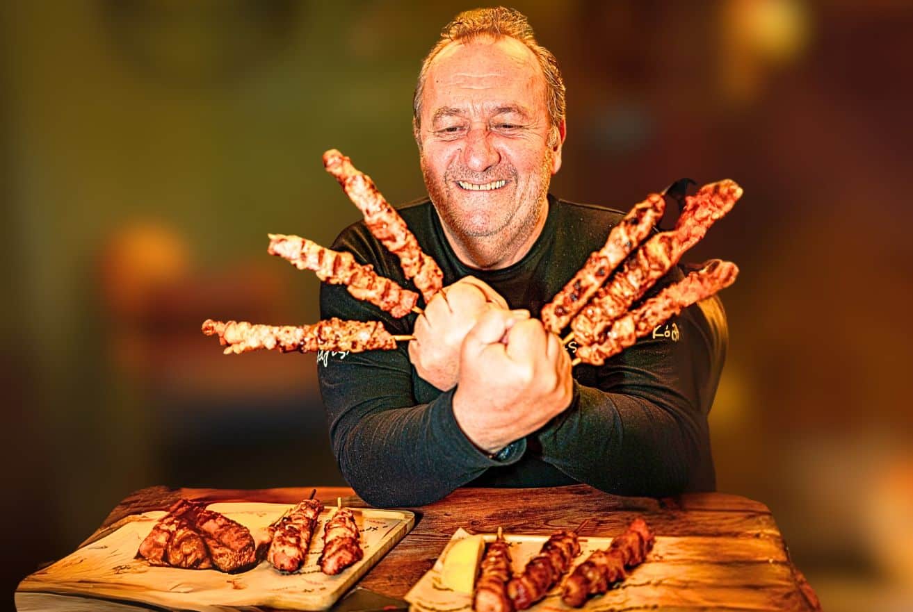 Δεν γούσταρε ποτέ ετοιματζίδικα κρέατα. Και κάθεται και τα… “πλέκει” ένα ένα κομμάτι στα καλαμάκια του. Το ίδιο κάνει και στο κεμπάπ και στο κοτόπουλο και στα μπιφτέκια και στον γύρο, ακόμα και στο μείγμα μπαχαρικών για τον γύρο.