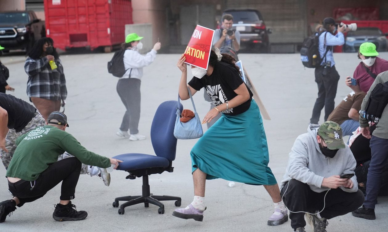 Όταν έγινε αντιληπτή η παρουσία τους, προκλήθηκε ένταση και το γραφείο του σερίφη δήλωσε ότι ανέπτυξε αστυνομικούς για την αποκατάσταση της τάξης. Διαδηλωτές πέταξαν αντικείμενα στους αστυνομικούς και επιχείρησαν να εμποδίσουν την αναχώρηση λεωφορείου από την περιοχή. Αστυνομικοί απώθησαν το συγκεντρωμένο πλήθος με δακρυγόνα και χειροβομβίδες κρότου-λάμψης.