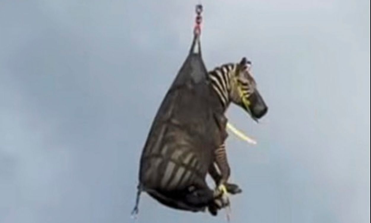 Βίντεο που δημοσιεύτηκε από το γραφείο του σερίφη δείχνει την ζέβρα τυλιγμένη σε ένα δίχτυ με το κεφάλι της να προεξέχει, καθώς μεταφέρεται με ελικόπτερο στον ιδιοκτήτή της