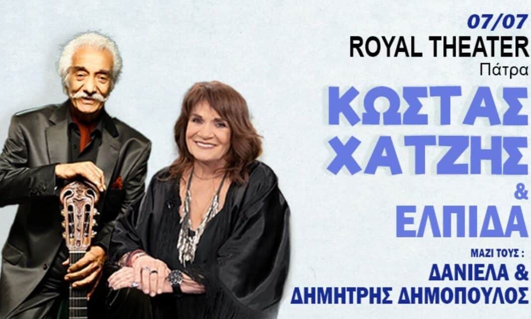 Ο σπουδαίος τροβαδούρος του ελληνικού τραγουδιού, Κώστας Χατζής, συναντά επί σκηνής την Ελπίδα για μία μοναδική μουσική βραδιά στον προαύλιο χώρο του Royal Theater στην Πάτρα, τη Δευτέρα 7 Ιουλίου.