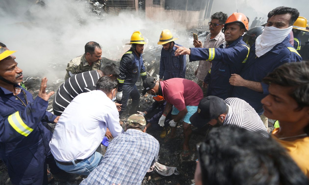 Μέλη της Εθνικής Δύναμης Αντιμετώπισης Καταστροφών φτάνουν στον τόπο της συντριβής αεροπλάνου στην Αχμενταμπάντ της Ινδίας, Παρασκευή 13 Ιουνίου 2025.
