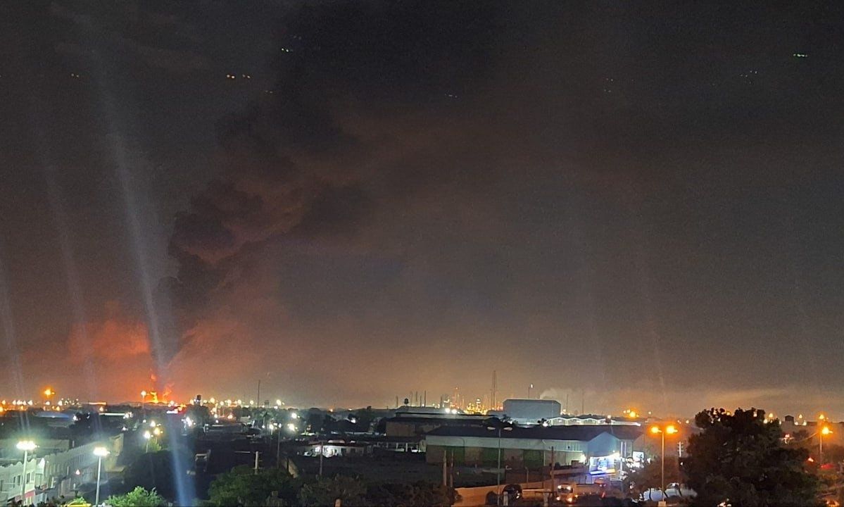 Δημοσιογράφος του Γαλλικού Πρακτορείου είδε την εγκατάσταση αποθήκευσης καυσίμων της Σαχράν στις φλόγες.