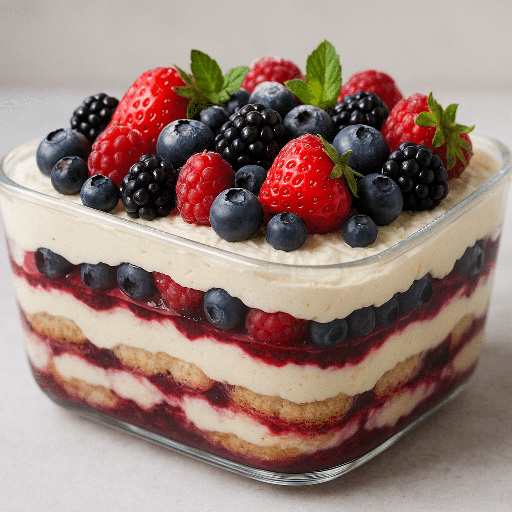 Η απάντηση είναι τιραμισού με φρούτα του δάσους. Αντικαθιστούμε τον καφέ με ένα αρωματικό σιρόπι φρούτων, προσθέτουμε μαρμελάδα και φρέσκα φρούτα του δάσους και δημιουργούμε ένα γλυκό ελαφρύ, αναζωογονητικό και απολαυστικό. Ιδανικό για να κλείσει ένα καλοκαιρινό γεύμα ή να σε συνοδεύσει σε ένα απόγευμα με παγωμένο καφέ.