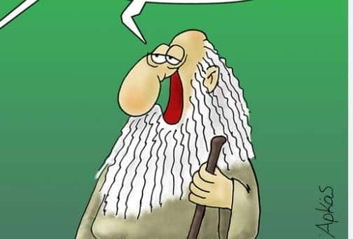 Καλημέρα με τον αφοπλιστικό, καυστικό αλλά πάντοτε εύστοχο Αρκά. Στο σημερινό του σκίτσο, ο πολυαγαπημένος δημιουργός μας βάζει σε σκέψεις με την υπογραφή του γνώριμου «προφήτη» που κρατά τη ράβδο του και κοιτά με βλέμμα… βαθιάς επίγνωσης.